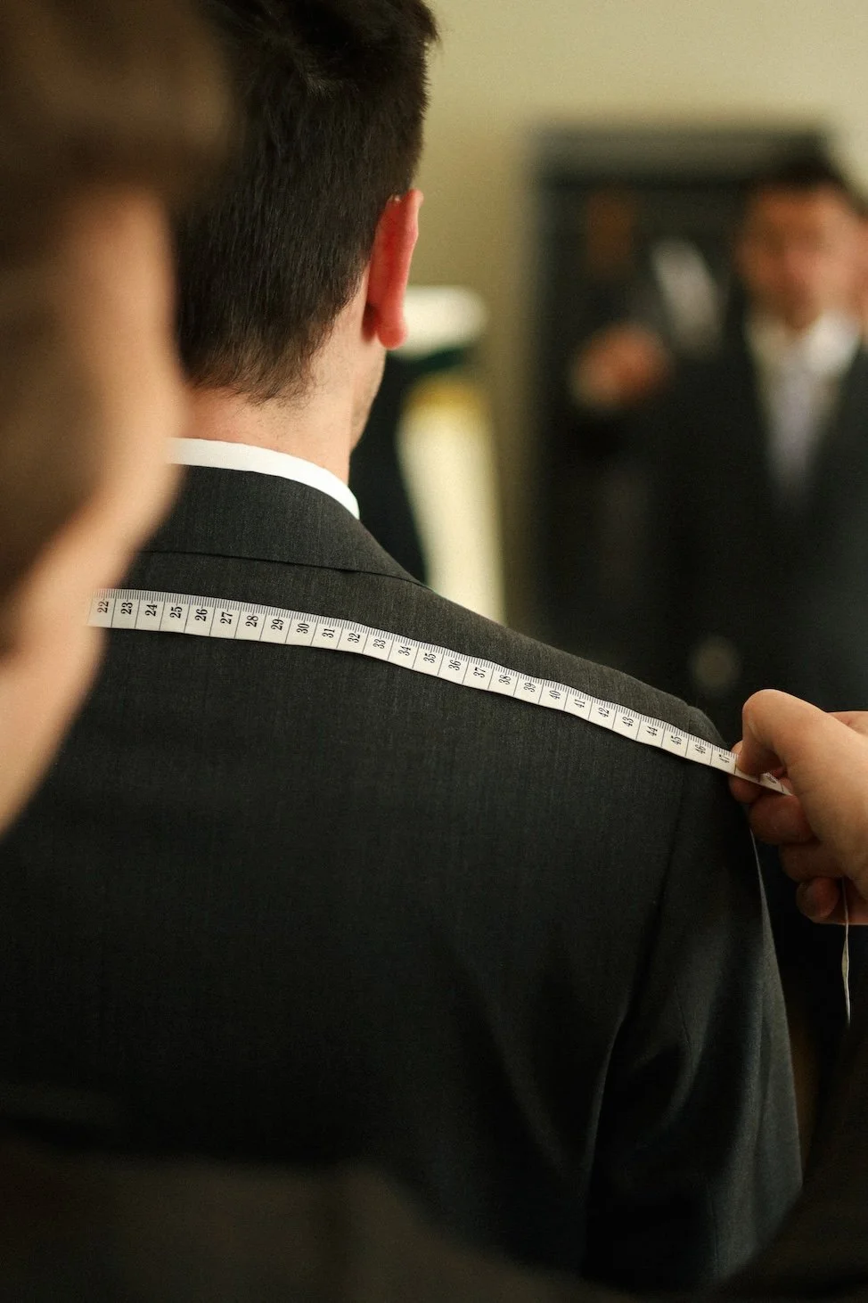 A méretvétel egy úgynevezett “mester” öltönyben történik. Ez alapján határozom meg a szükséges módosításokat, figyelembe véve a testtartást, az arányokat és a kívánt sziluettet.